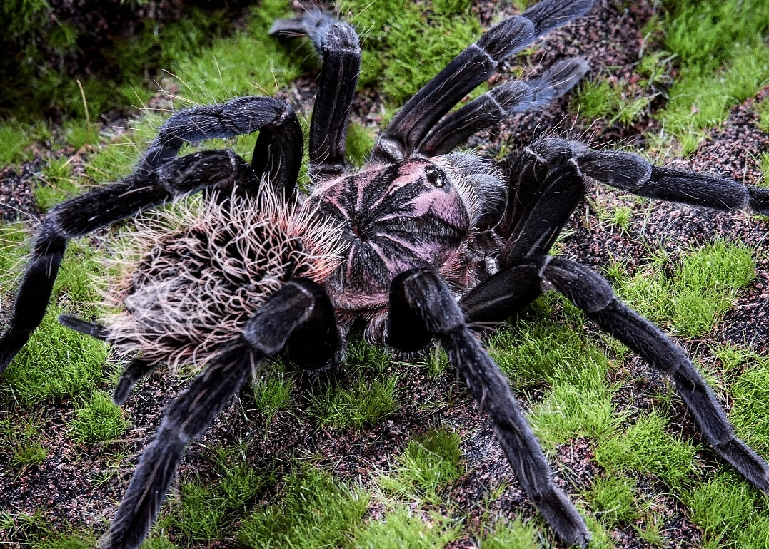 For housing its best to choose an enclosure that fits your tarantula well. For terrestrial spiders something short and wide, and arboreal spiders something tall and narrow. Usually smaller is better than larger when choosing between two sizes. Use Eco Earth coco coir or other organic bedding like potting soil mixed with clay or sand. You can also use sphagnum moss and leaf litter to decorate.
